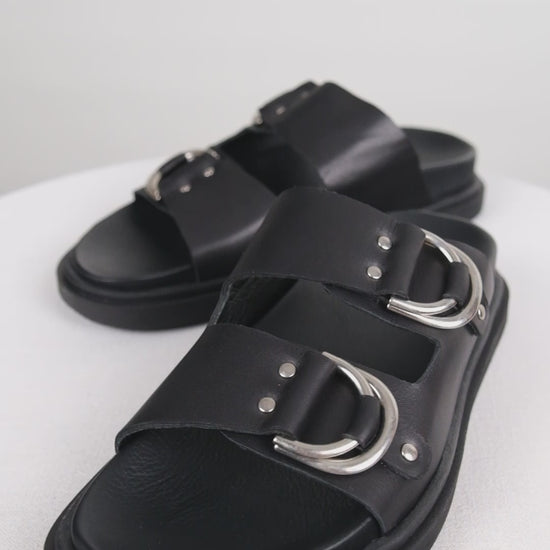 • 3cm (1.18in) platform, Backless slip on style, Side buckle detail, Soft leather, Open round toe