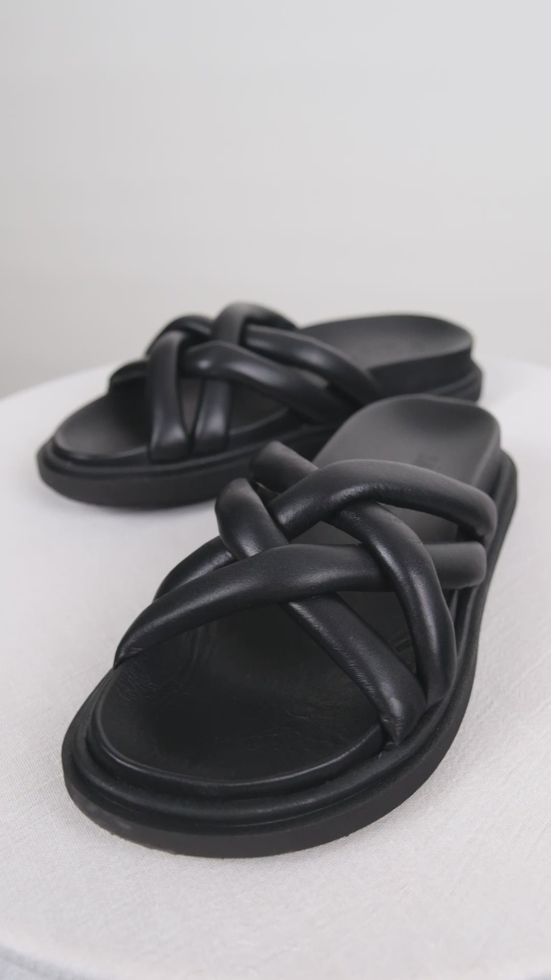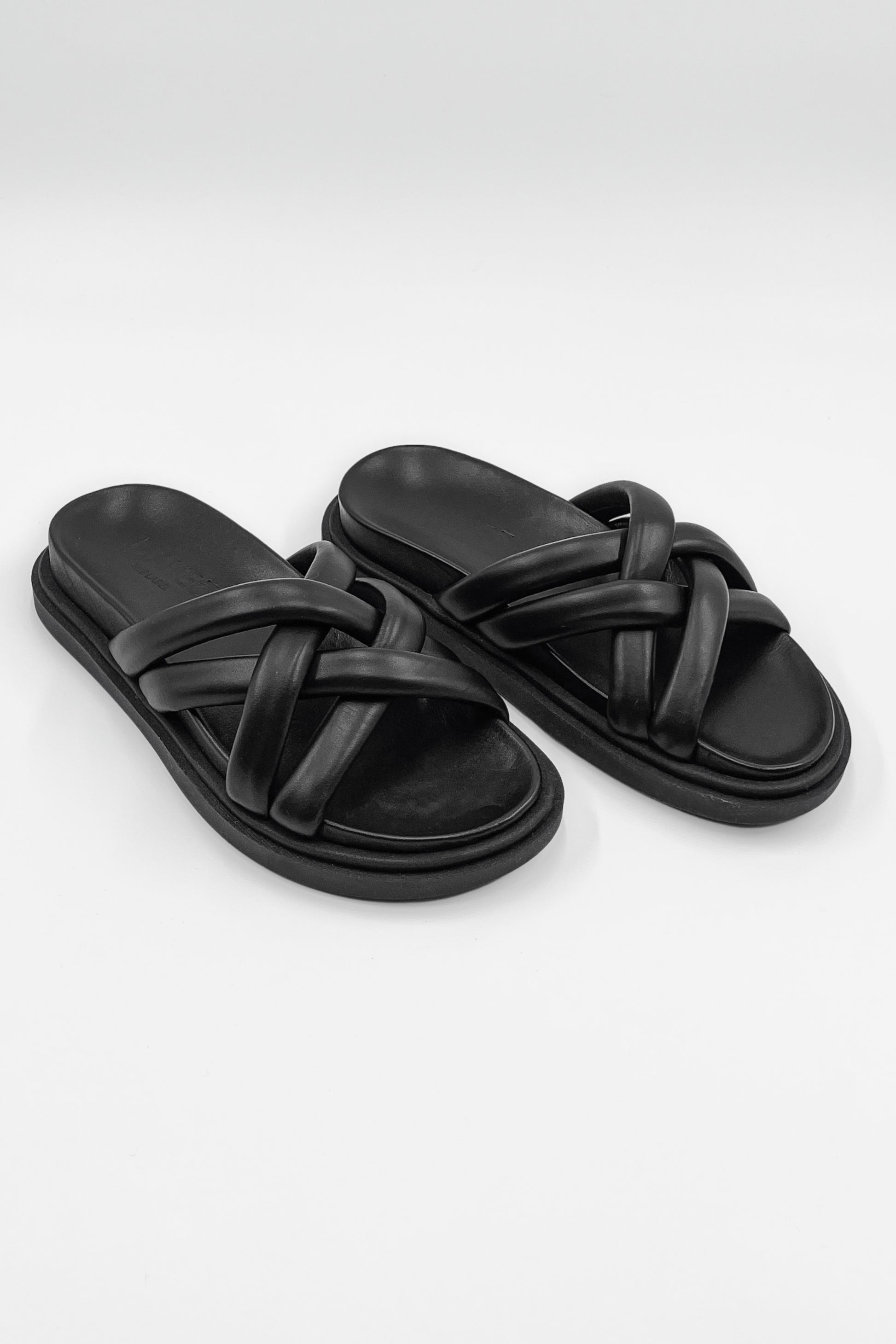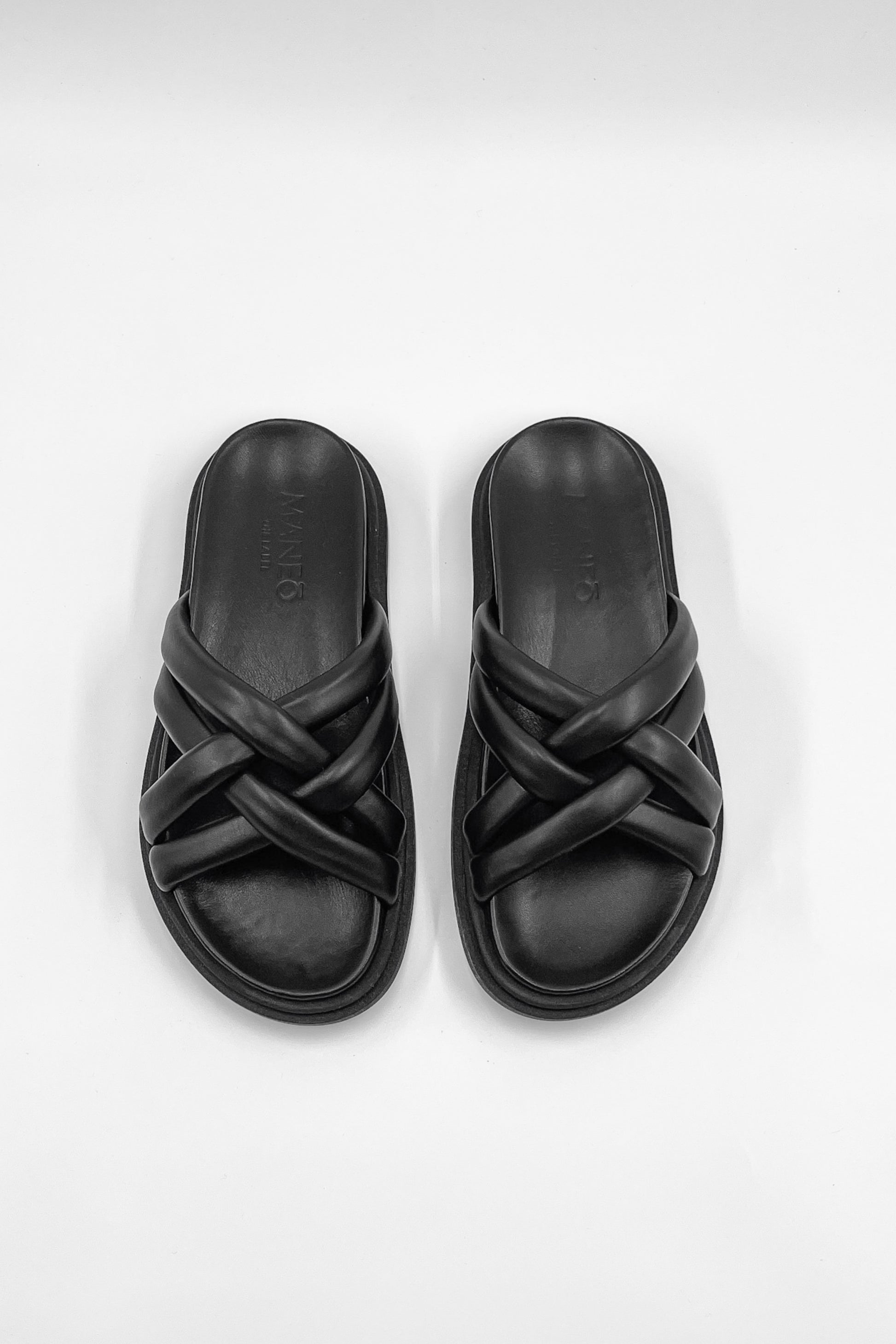 • 3cm (1.18in) platform, Criss-cross padded straps, Soft leather, Open round toe
