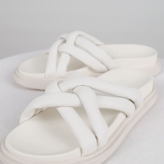 • 3cm (1.18in) platform, Criss-cross padded straps, Soft leather, Open round toe